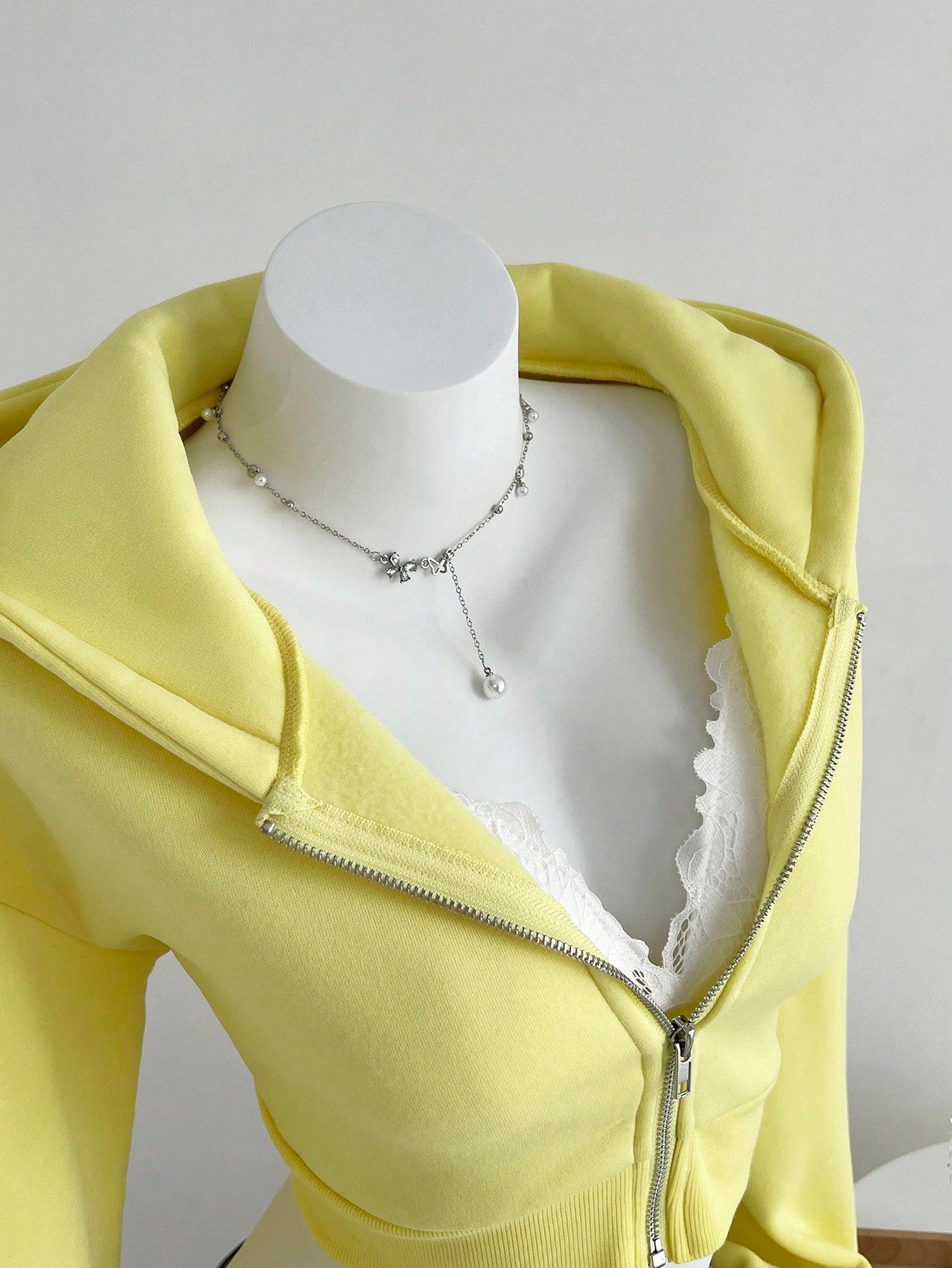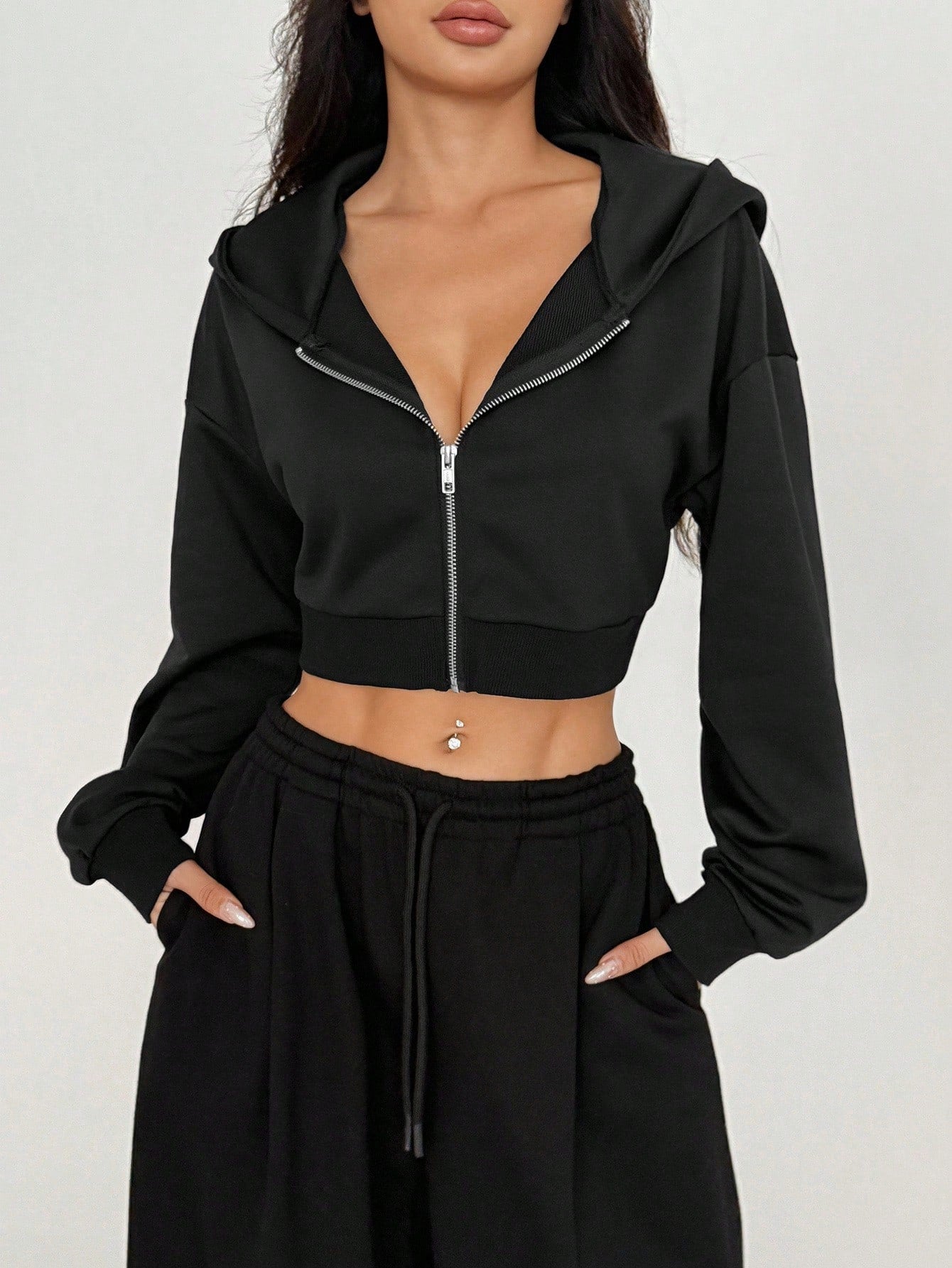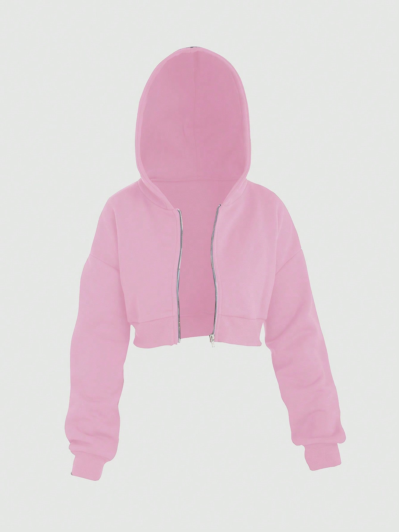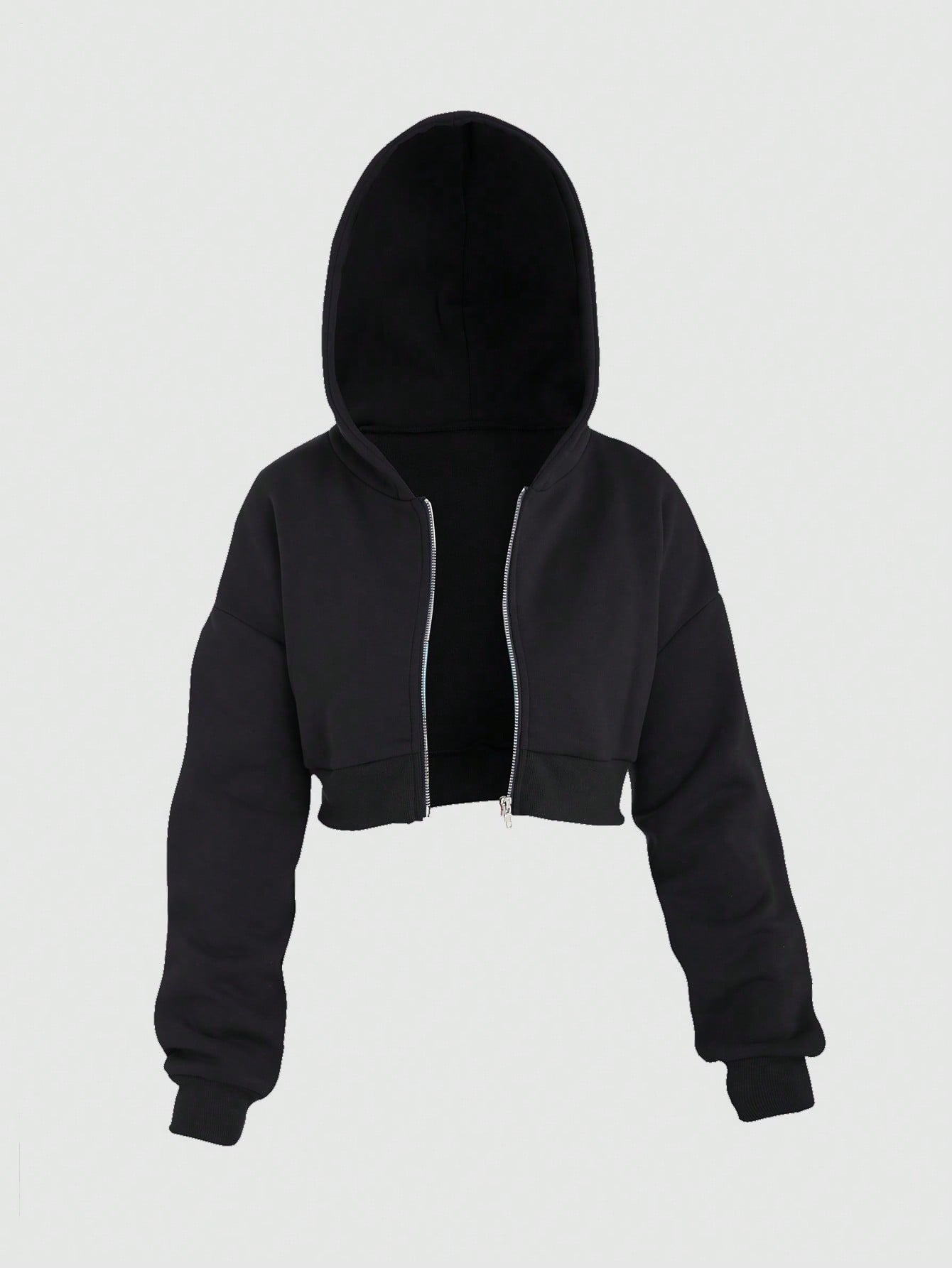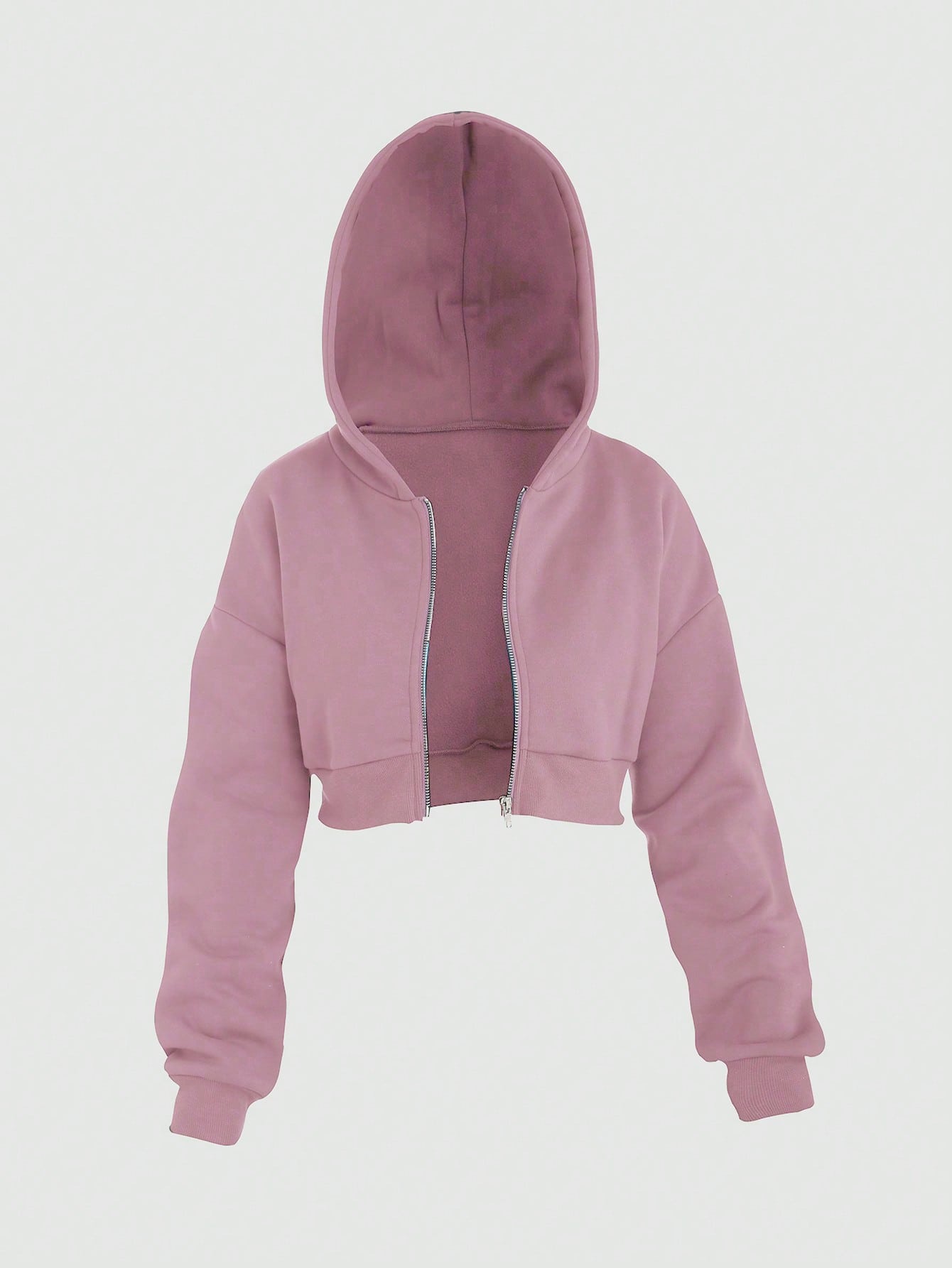 Stay cozy and stylish with this women’s front-zip crop hoodie, designed for casual daily wear, school, and seasonal outfits. Featuring a hooded neckline, drop-shoulder sleeves, and a short cropped length, this sweatshirt brings a trendy, relaxed vibe that’s perfect for spring and fall temperatures (18–25℃ / 63–77℉).