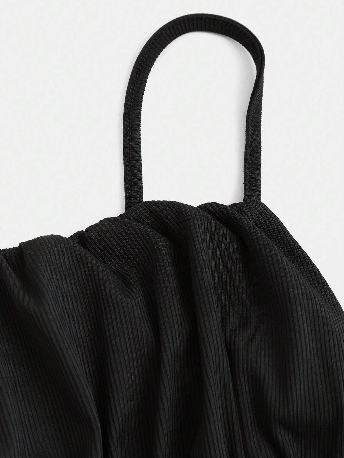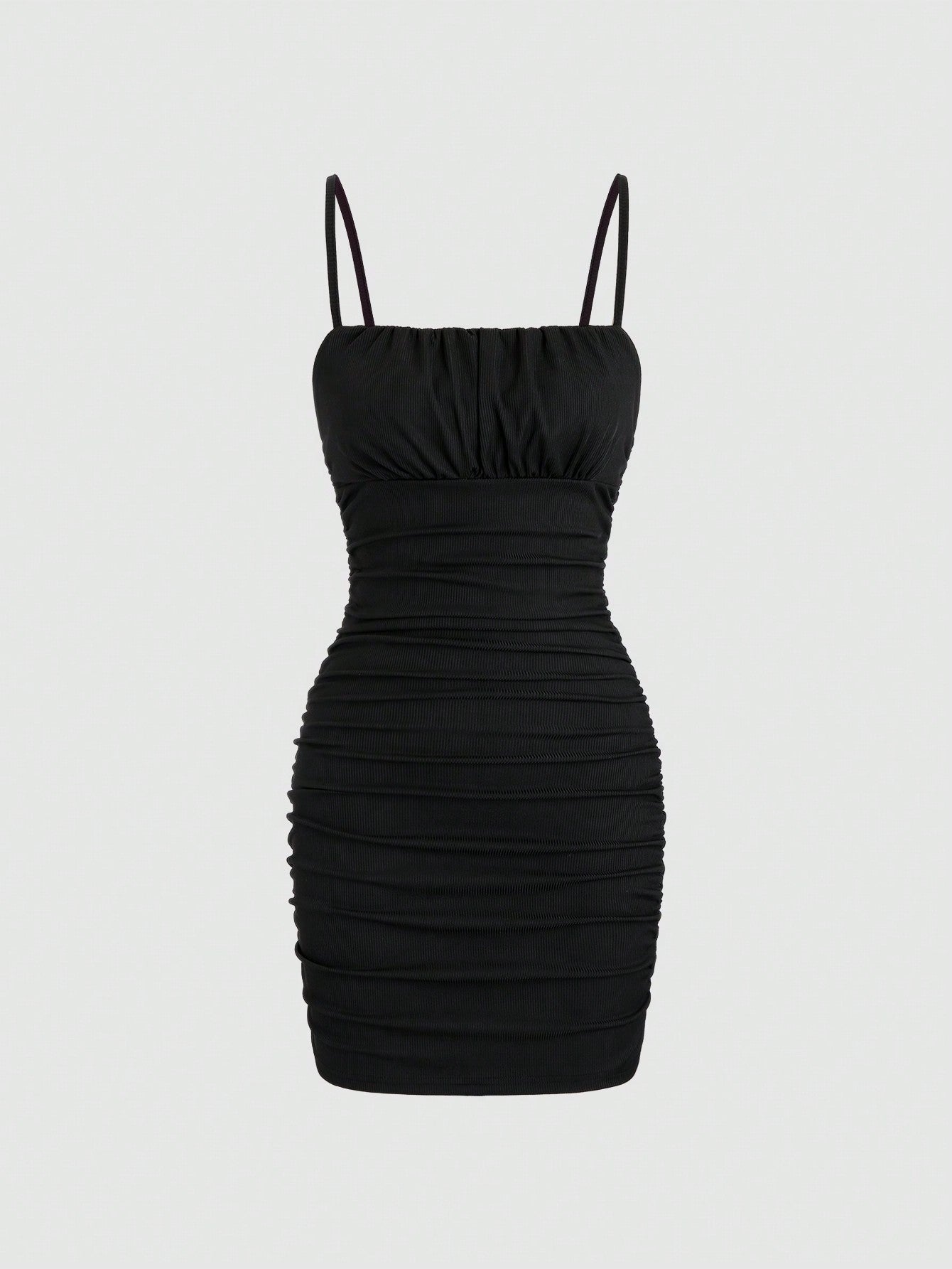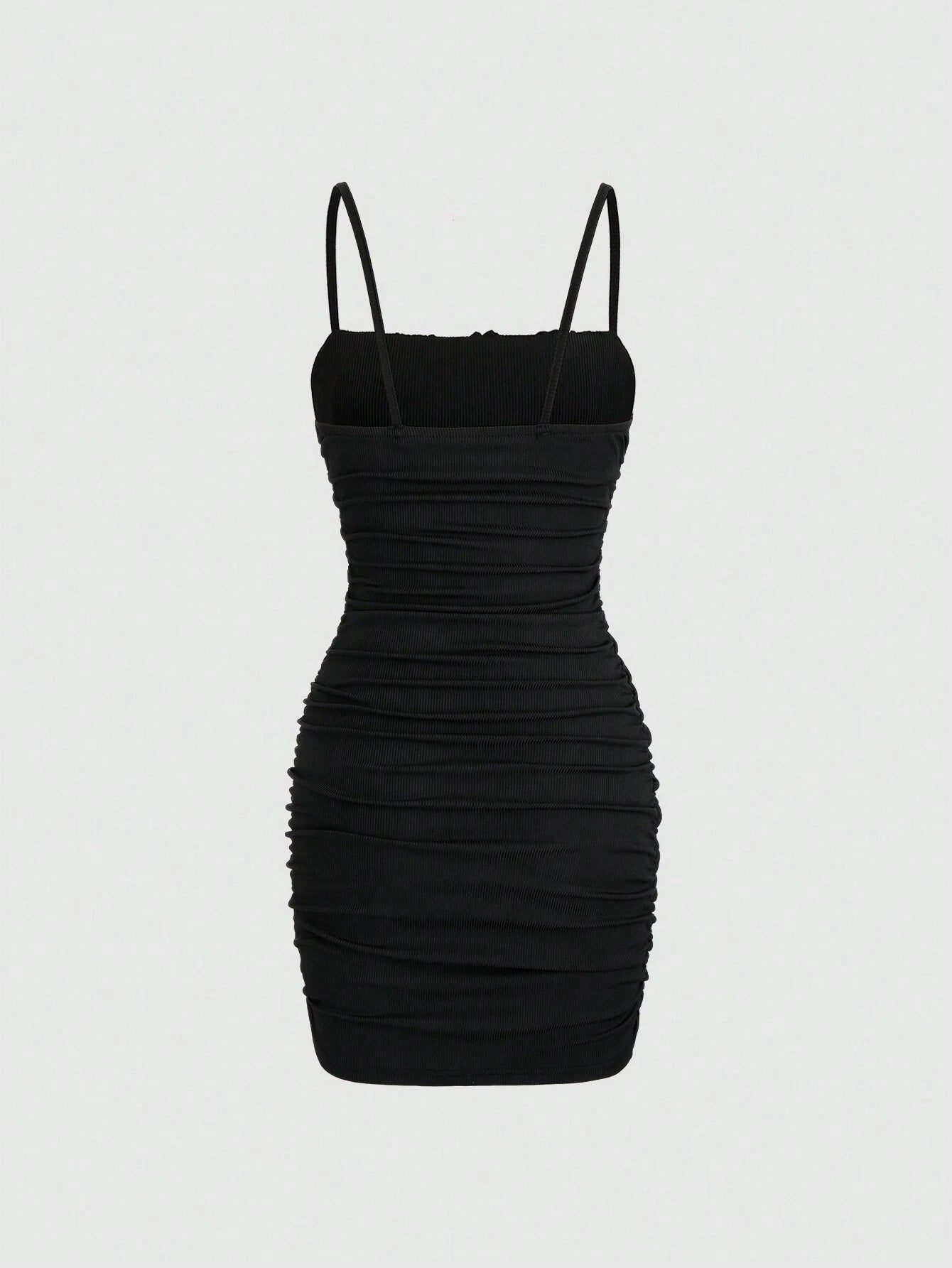 Yozy Women’s Black Wrap Dress – Y2K Inspired Ruched Spaghetti Strap Cami Dress, Slim Fit Short Summer Dress for Festivals & Casual Wear