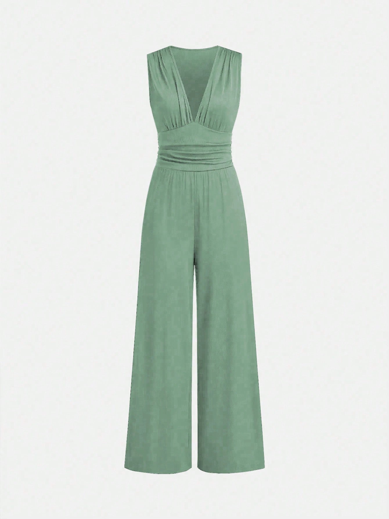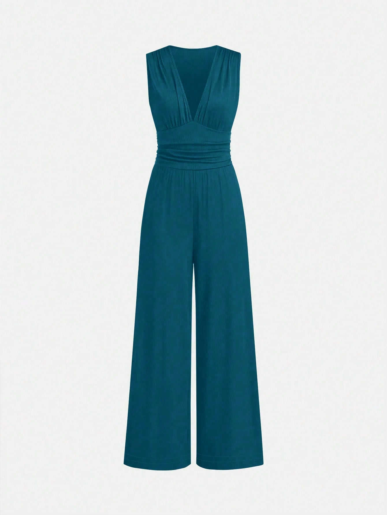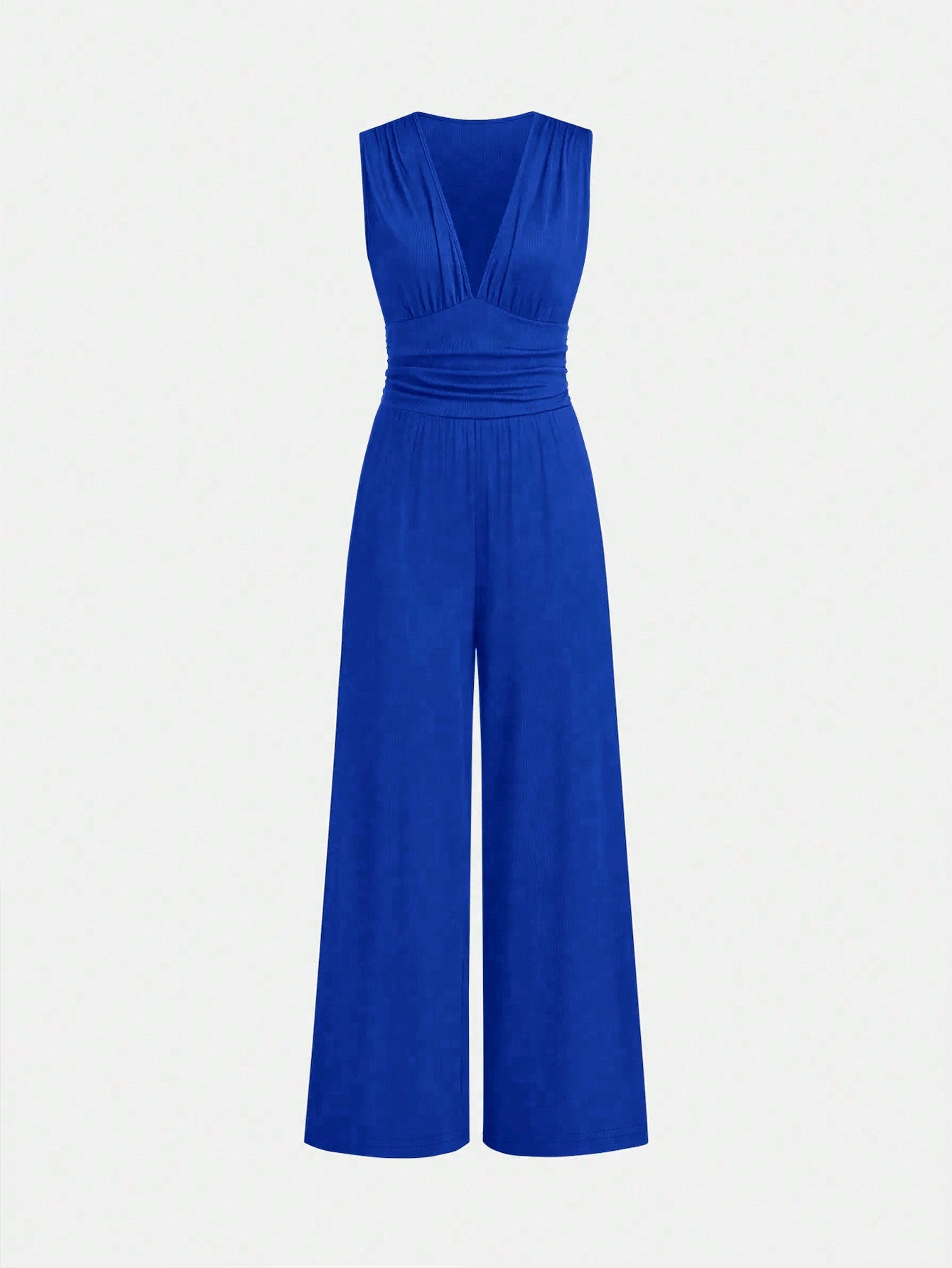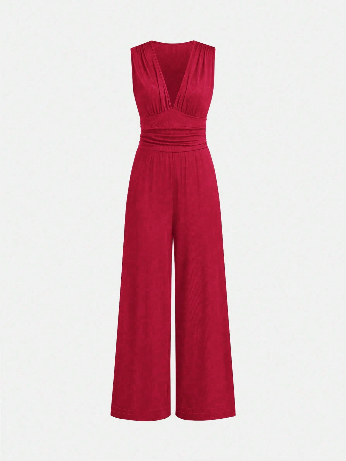 Step into effortless sophistication with the Opuloom Women’s Elegant Summer Jumpsuit, designed to make a statement with its deep V-neckline, pleated bodice, and wide-leg silhouette. Featuring a high waist design and backless ruched detailing, this jumpsuit combines elegance and comfort for any occasion.