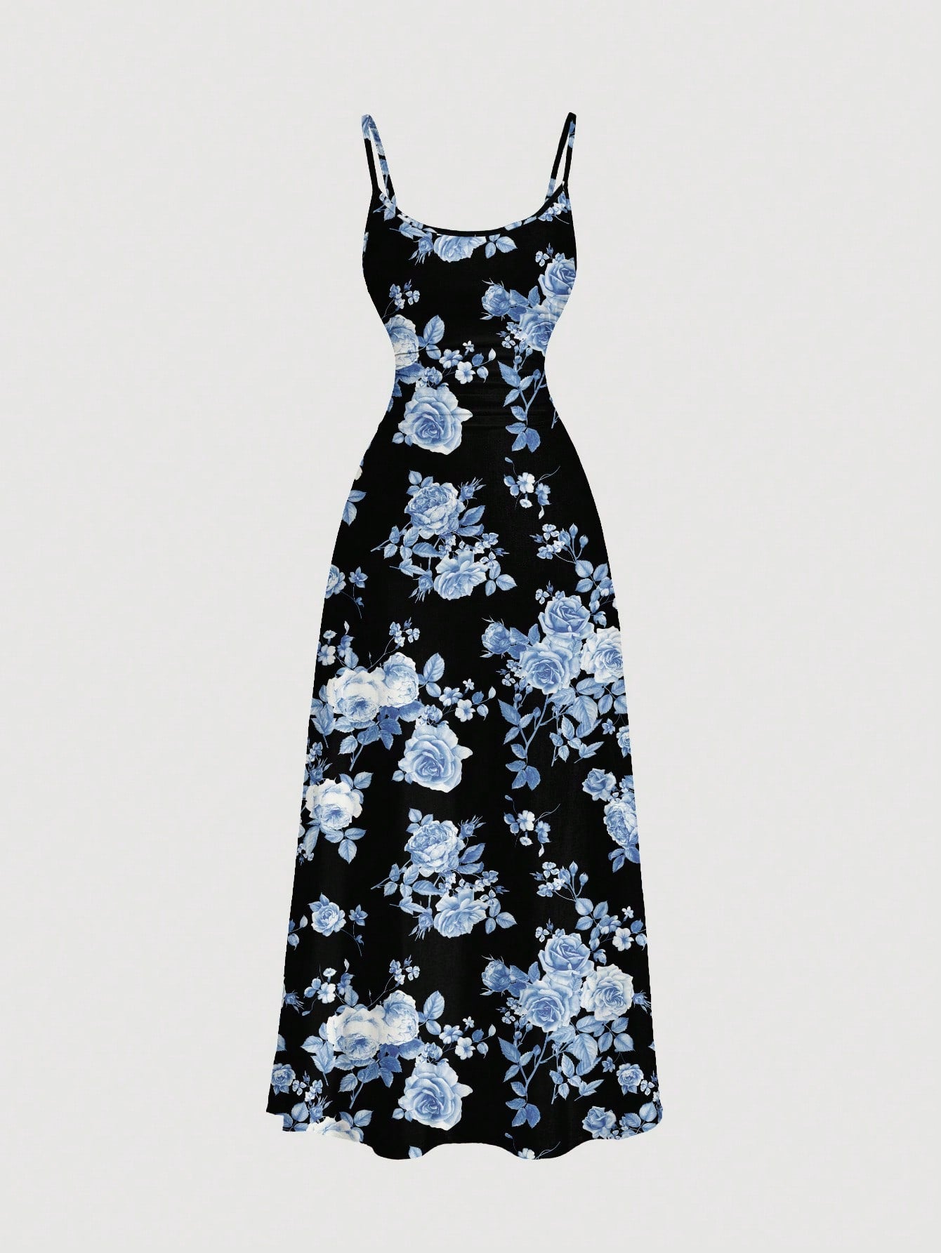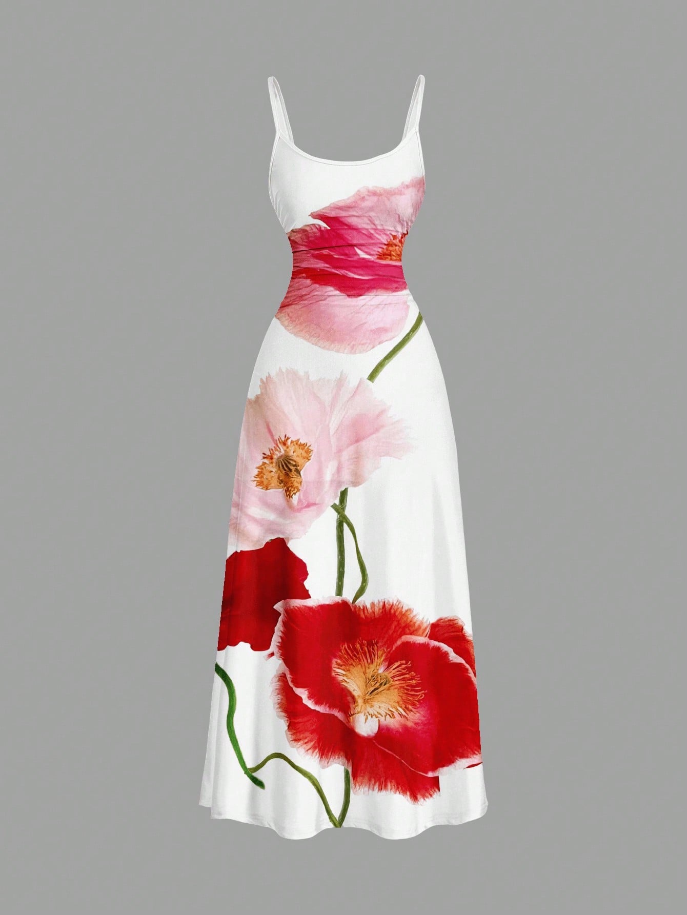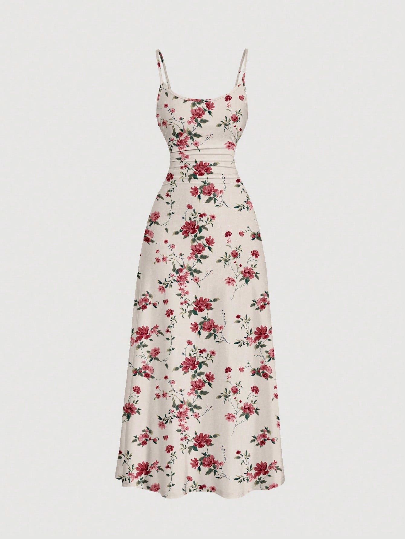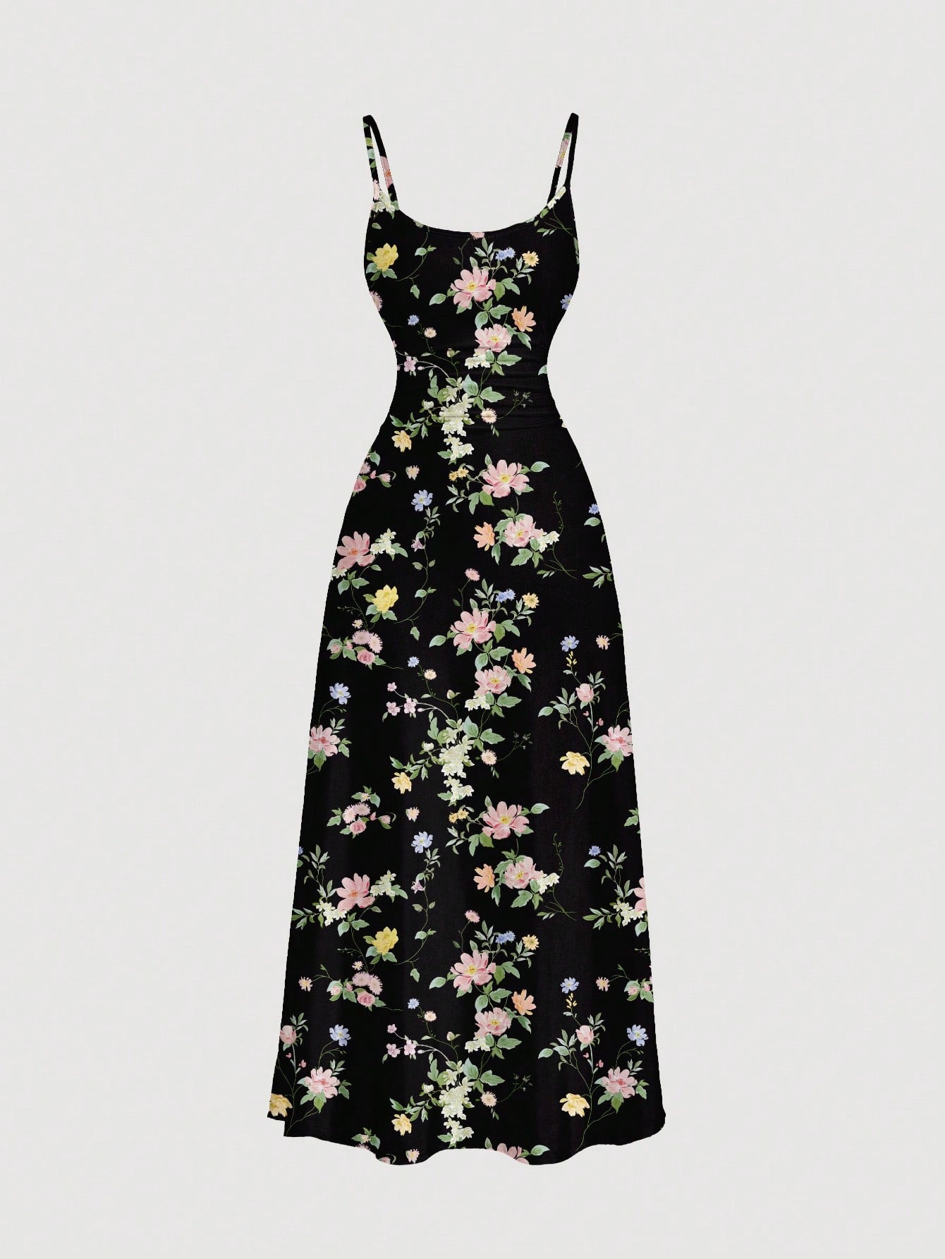 Step into effortless elegance with this women’s floral print summer maxi dress, designed in a boho-inspired minimalist style. Featuring a slim fit bodice with ruched waistline, a flowy flared hem, and spaghetti straps, this dress perfectly balances comfort and femininity.