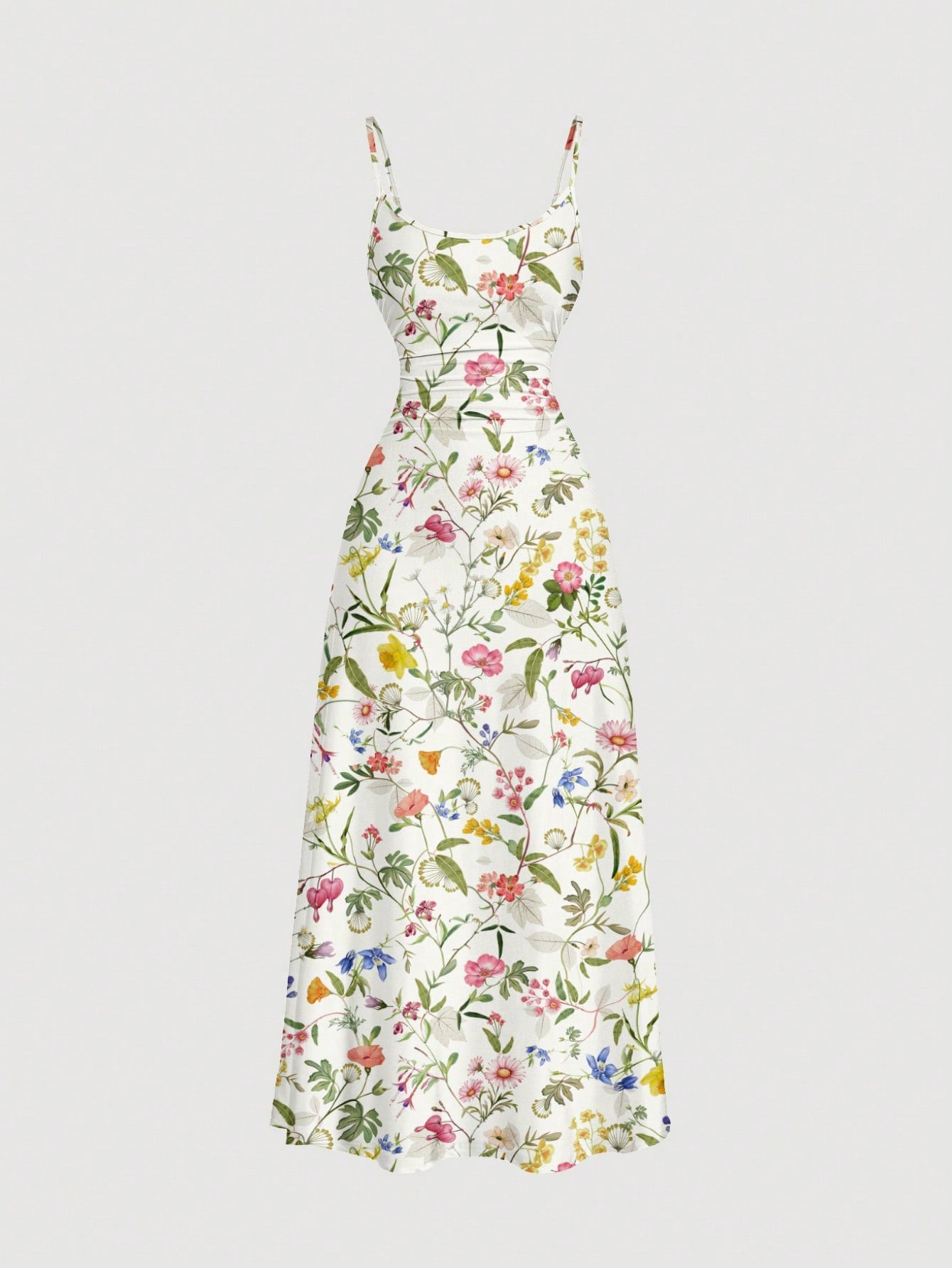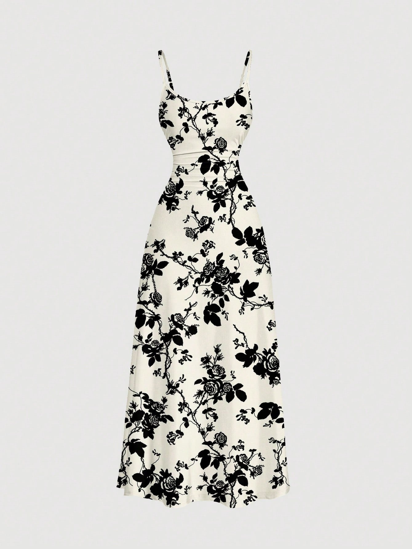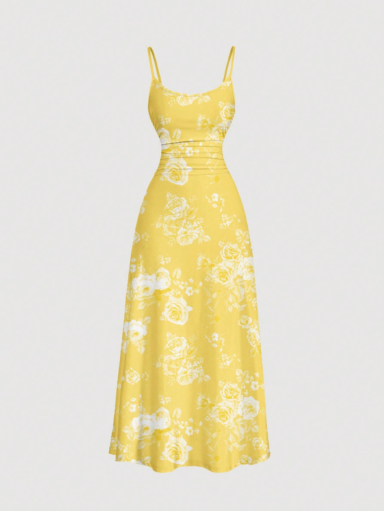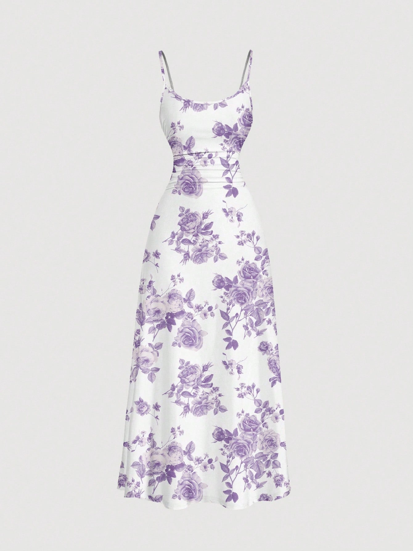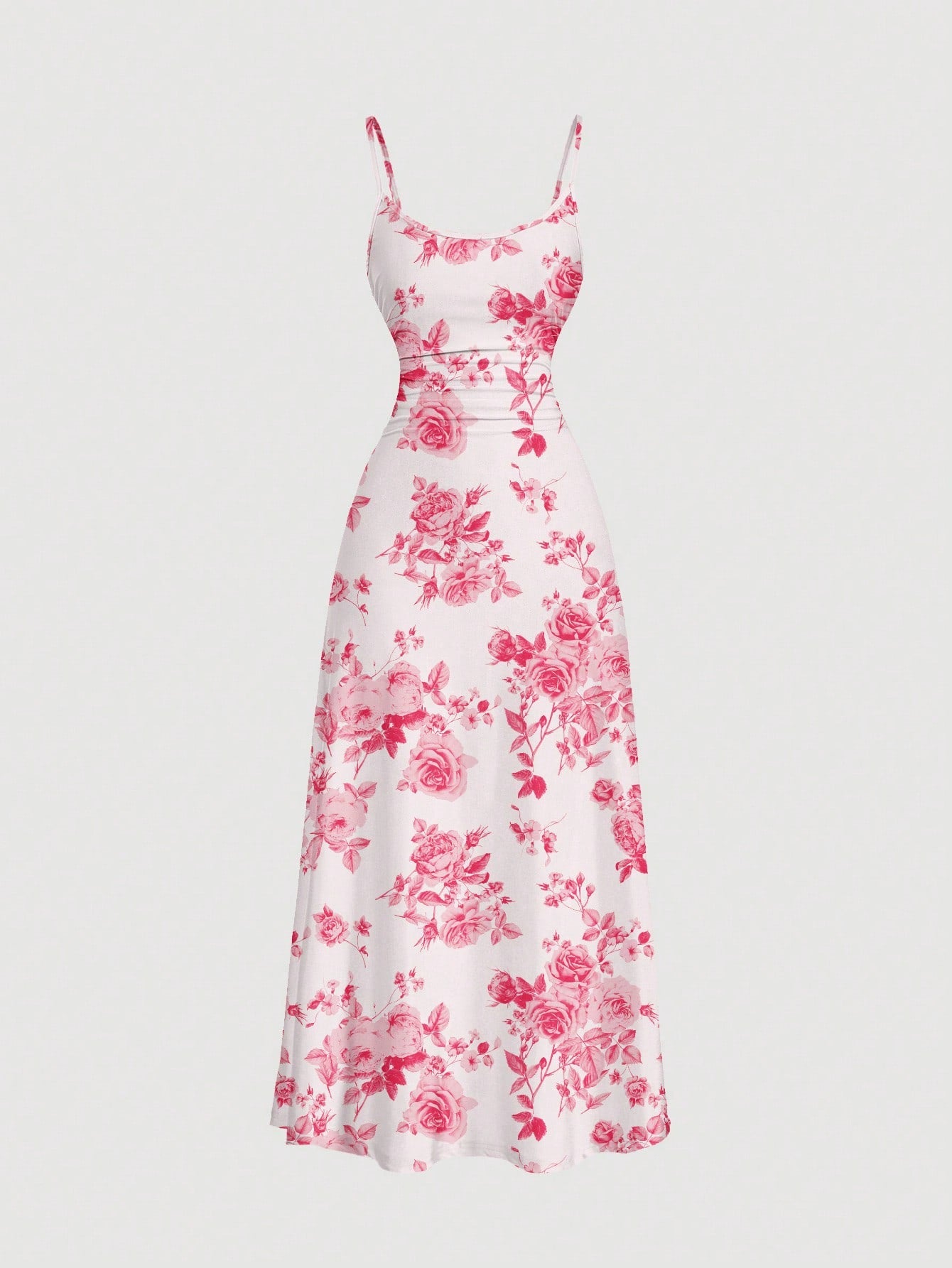 Step into effortless elegance with this women’s floral print summer maxi dress, designed in a boho-inspired minimalist style. Featuring a slim fit bodice with ruched waistline, a flowy flared hem, and spaghetti straps, this dress perfectly balances comfort and femininity.