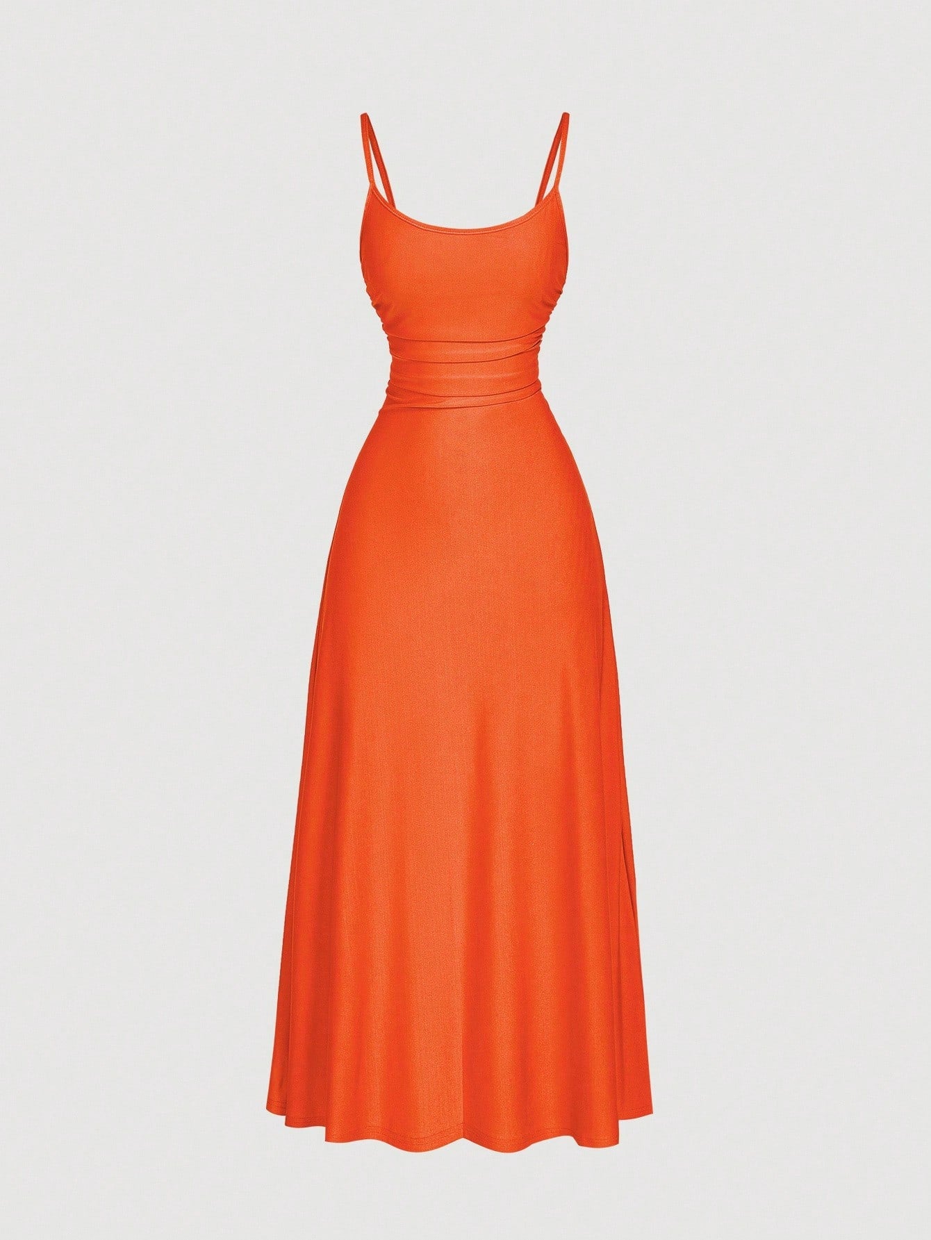 Exude timeless elegance with this women’s ruched waist flared hem dress, designed for semi-formal occasions, evening gatherings, and summer celebrations. Featuring delicate spaghetti straps, a flowy flared hem, and a slim-fit silhouette, this dress blends sophistication with effortless charm.
