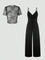 The set features a lace high-neck camisole crafted from 84% polyamide and 16% elastane for a soft, breathable, and stretchy fit. Paired with a sleeveless knitted jumpsuit made of 95% polyester and 5% elastane, the ensemble offers a sleek silhouette while keeping you comfortable.