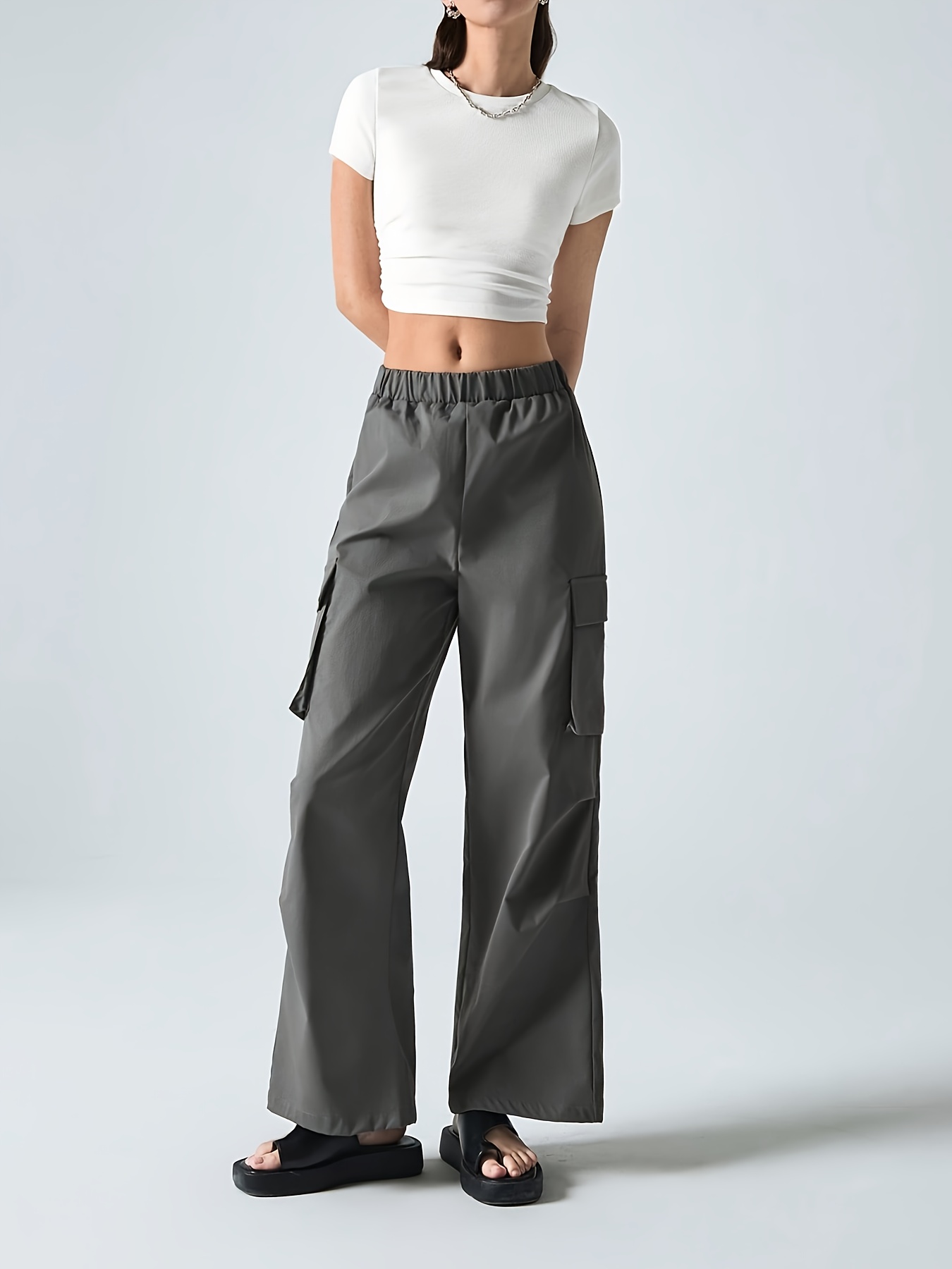 Women’s Casual Two-Piece Set – Solid Color Short Sleeve T-Shirt & Cargo Pants | Breathable Spring/Summer Outfit