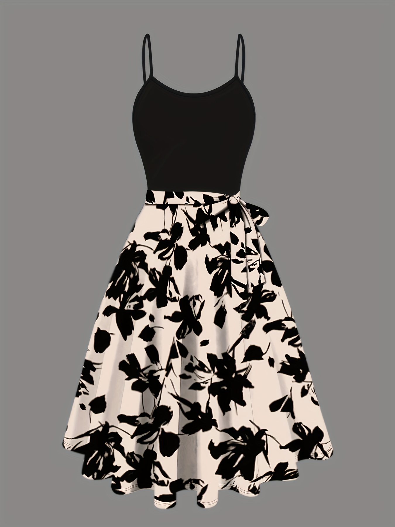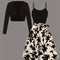 Women’s Elegant Two-Piece Dress Suit – Knit Cardigan Jacket & Lace-Up Suspender Dress | Floral Print Outfit for All Seasons
