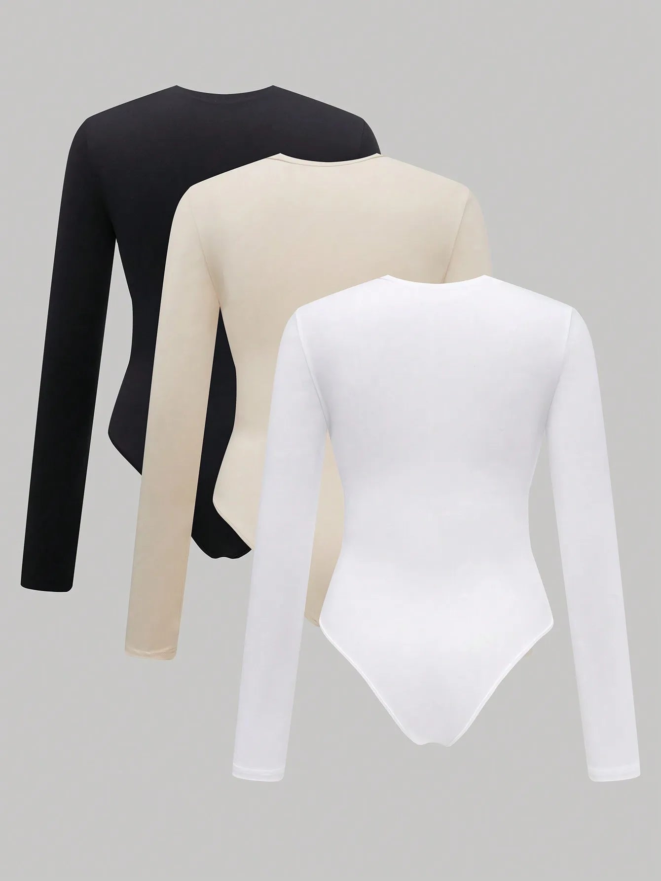Women’s 3-Piece Casual Outfit Set – Solid Color Long Sleeve Knit Top with Jumpsuit & Cover | Spring Summer Fashion