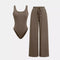 Set Includes: Sleeveless vest bodysuit + wide leg ankle-length pants