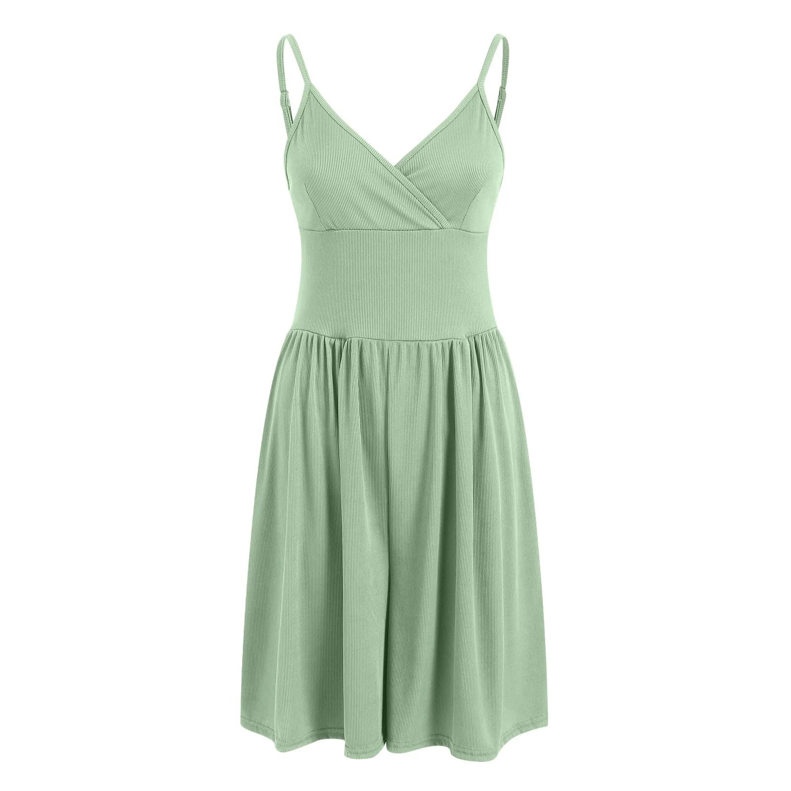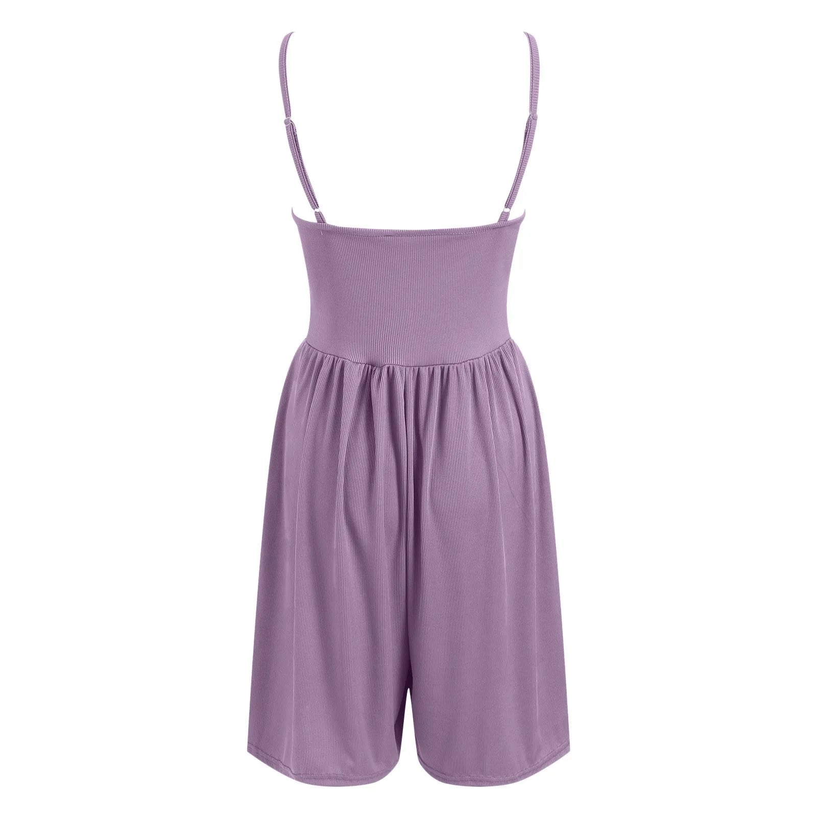 Women’s Casual Romper – Spaghetti Strap Sleeveless Backless Jumpsuit with Pockets | Solid Color Summer Playsuit
